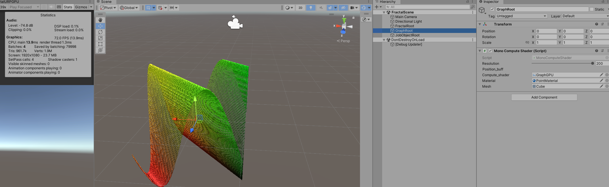 然后将Mono脚本挂在一个Gameobject上,将对应的ComputeShader挂在上面即可。